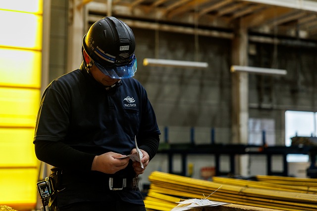 当社の強みは、工場での加工と現場での施工が途切れずに連動している点にあります。加工・ユニット鉄筋製造・配筋・結束までを自社で完結でき、工程ごとの精度を揃えることができます。工場はリニューアルを重ね、設備や動線が整理され、作業効率も向上しました。現場では加工品の精度を活かし、無理のない流れで施工を進めています。経験者が多いため、細かな判断や技術の伝達も自然に行われ、品質が均一に保たれています。こうした積み重ねが、見た目以上の強さにつながっています。